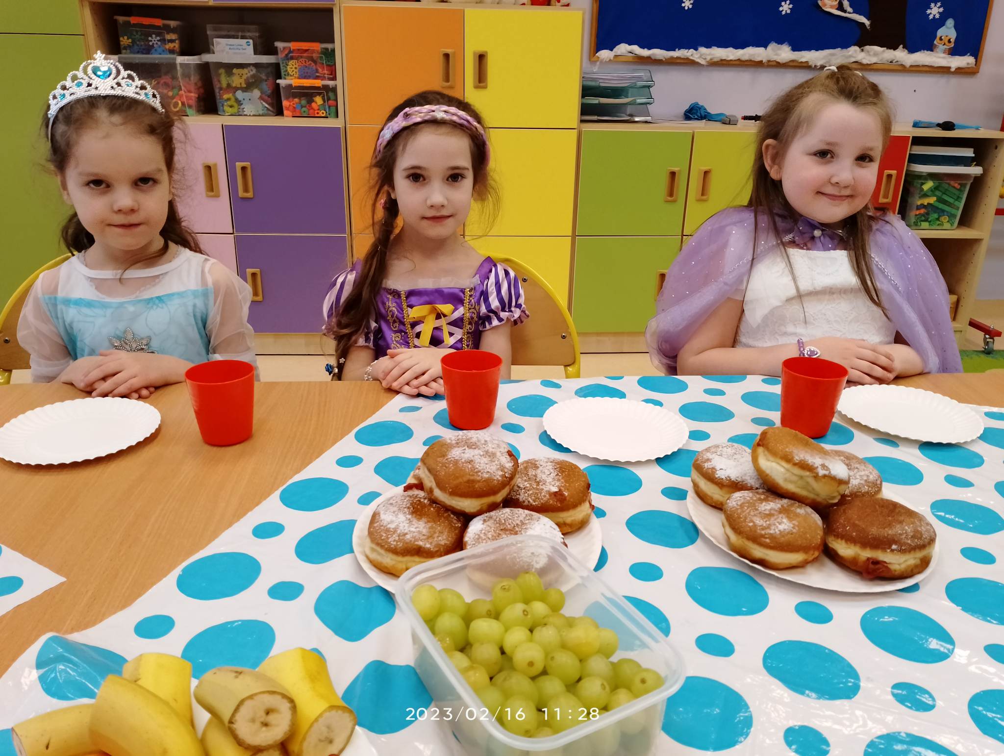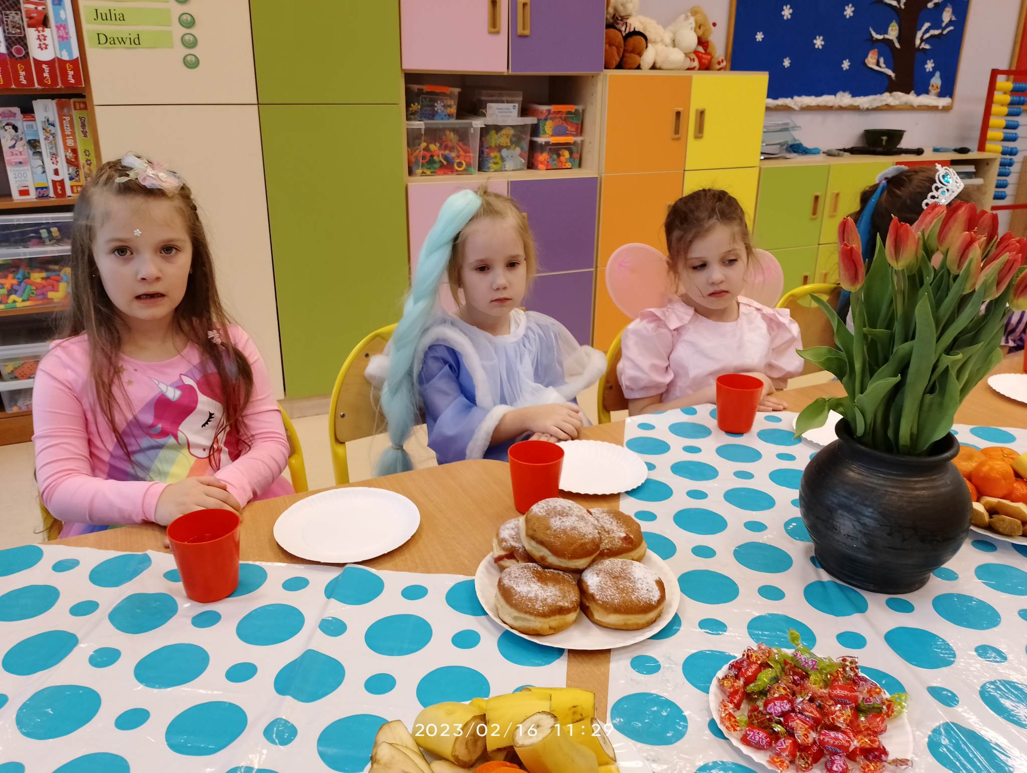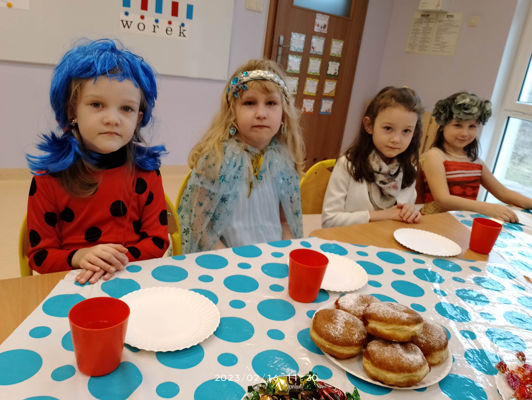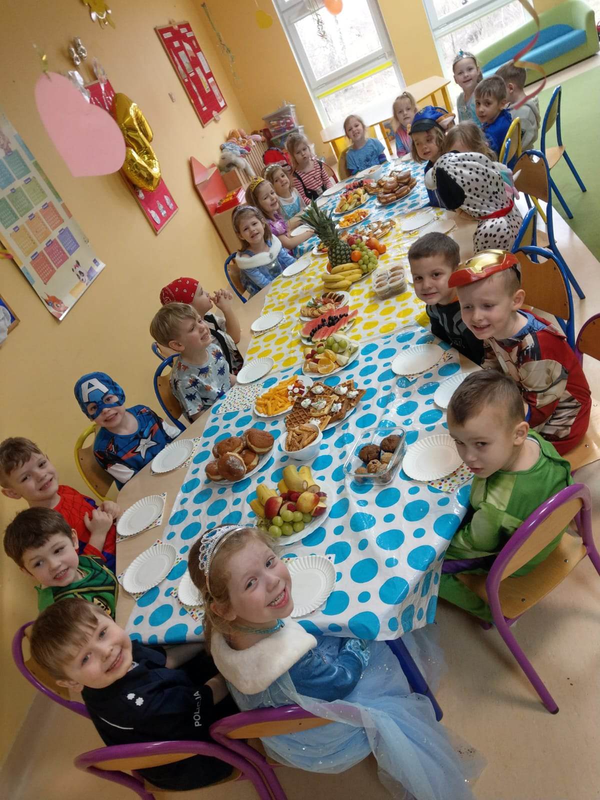 Bal karnawałowy dla przedszkolaków to dzień niezwykły, często wyczekiwany przez wiele tygodni. Jest atrakcją bardzo lubianą przez dzieci, dostarczającą im wielu przeżyć i radości. Tak też było w naszym przedszkolu w dniu 16.02.2021r.Tego dnia już od rana w przedszkolu pojawiały się kolorowe postacie. Dzieci przebrane były za swoich ulubionych bohaterów znanych bajek, w salach przedszkolnych można było spotkać wróżki, księżniczki, motyle , piratów, strażaków, policjantów, Spider-Mana, Batmana, nie sposób zliczyć i wymienić te wszystkie postacie. Rozpoznać dzieci było bardzo trudno. Wystrój sali wprowadził w radosny nastrój oraz zachęcał wszystkich do wesołej zabawy. Wspólna zabawa przyniosła wiele radości naszym wychowankom, to było głównym celem tego balu. Przedszkolaki świetnie bawiły się w rytm muzyki porywającej do tańca. Kiedy czas zabawy dobiegł końca dzieci udały się na poczęstunek.