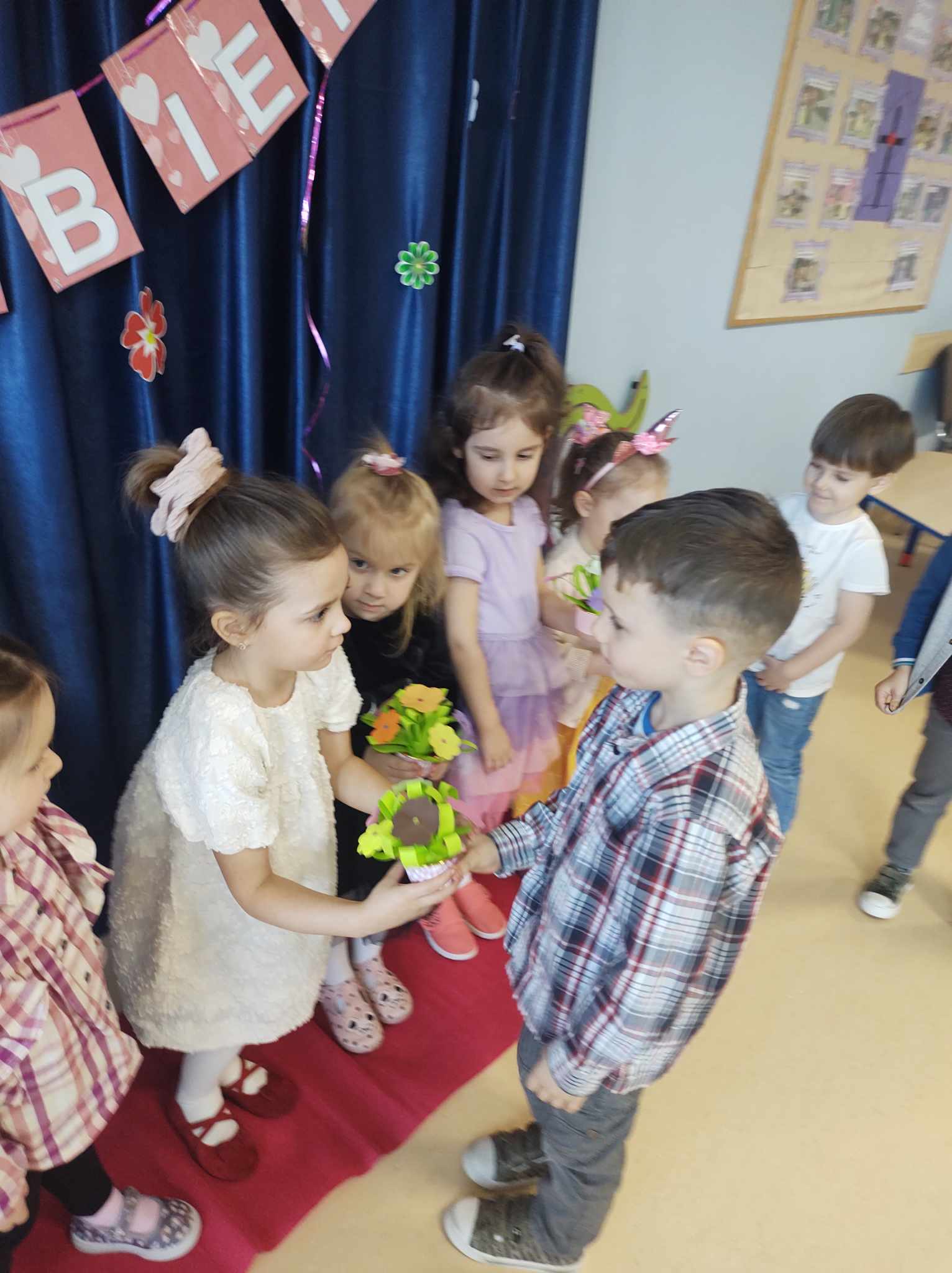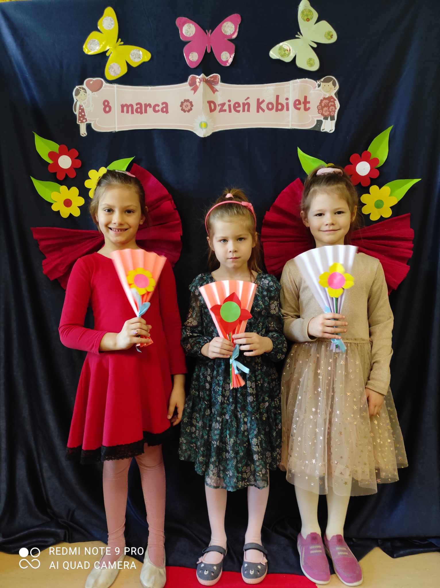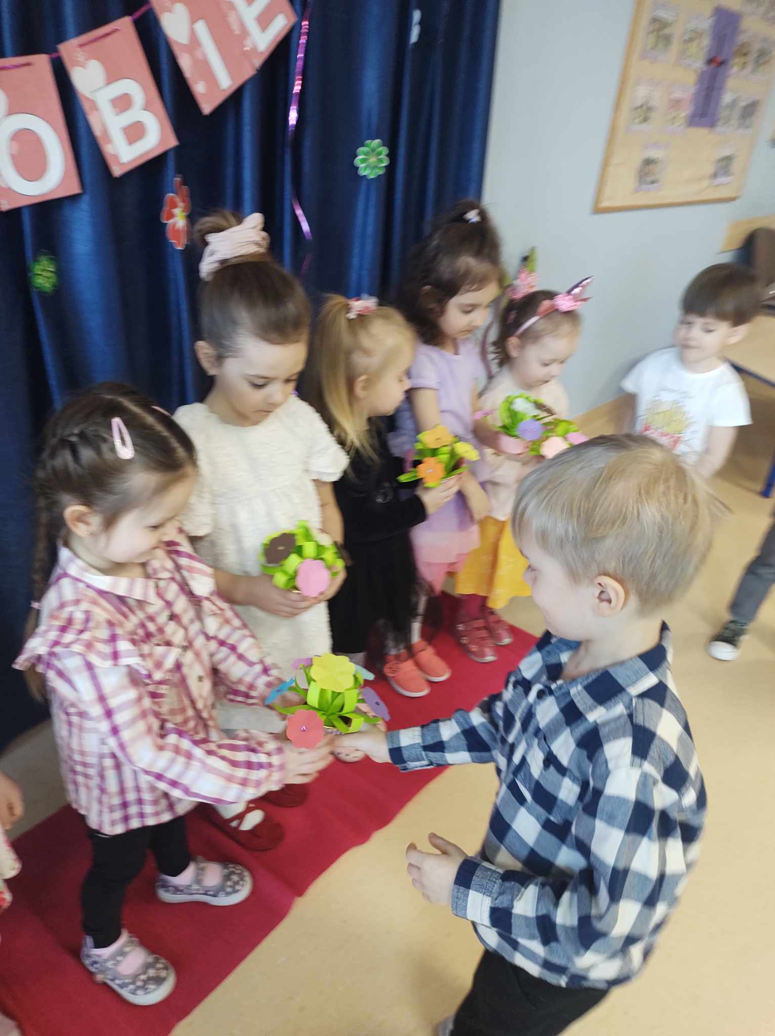 z dziećmi o roli kobiet w ich życiu – o mamusiach, babciach, siostrach, koleżankach, paniach z najbliższego otoczenia. Wychowawczynie wprowadzały uroczysty nastrój czytając przygotowane na tę okoliczność wiersze, śpiewając piosenki oraz wykonując piękne prace plastyczne. Dzień Kobiet w naszym przedszkolu upłynął w bardzo miłej atmosferze.