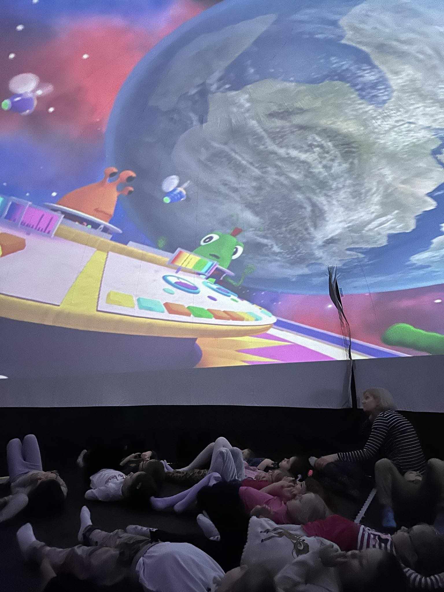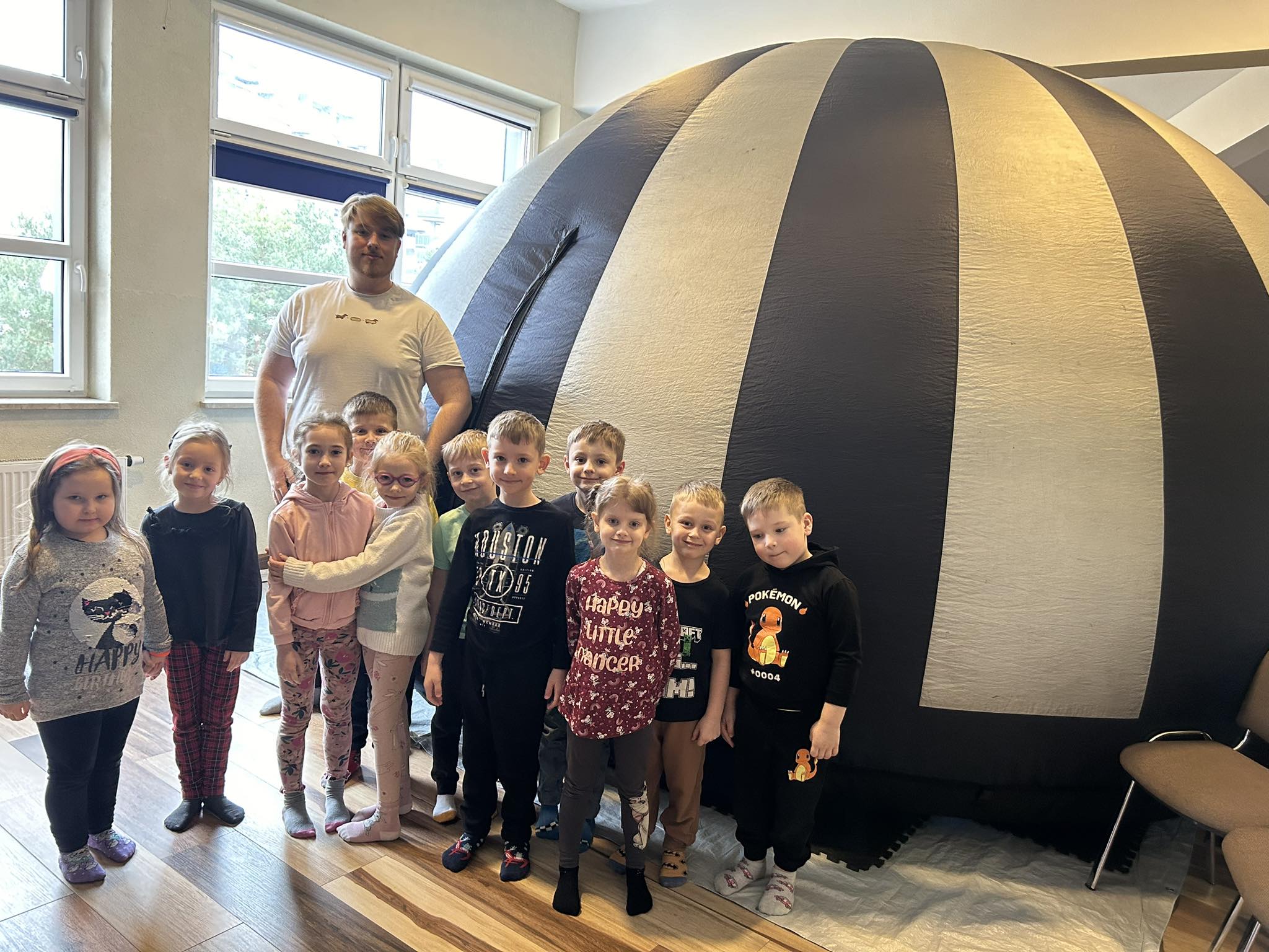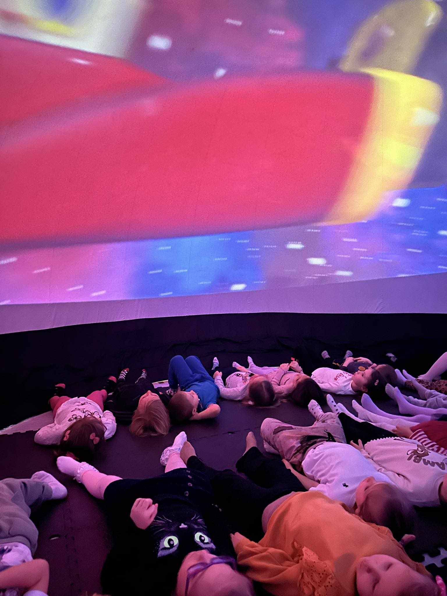 Kino sferyczne to mobilne planetarium, które przyjechało do nas w celach edukacyjnych i przedstawiło nam filmy edukacyjne pod kątem 3600. Dzieci miały możliwość nie tylko oglądać, lecz także zostać uczestnikami niepowtarzalnych zdarzeń. Wypukły obraz, jasne kolory i dźwięk pozytywnie wpływają na układ nerwowy dziecka, jego stan fizyczny i emocjonalny. Oj , emocji było dużo!