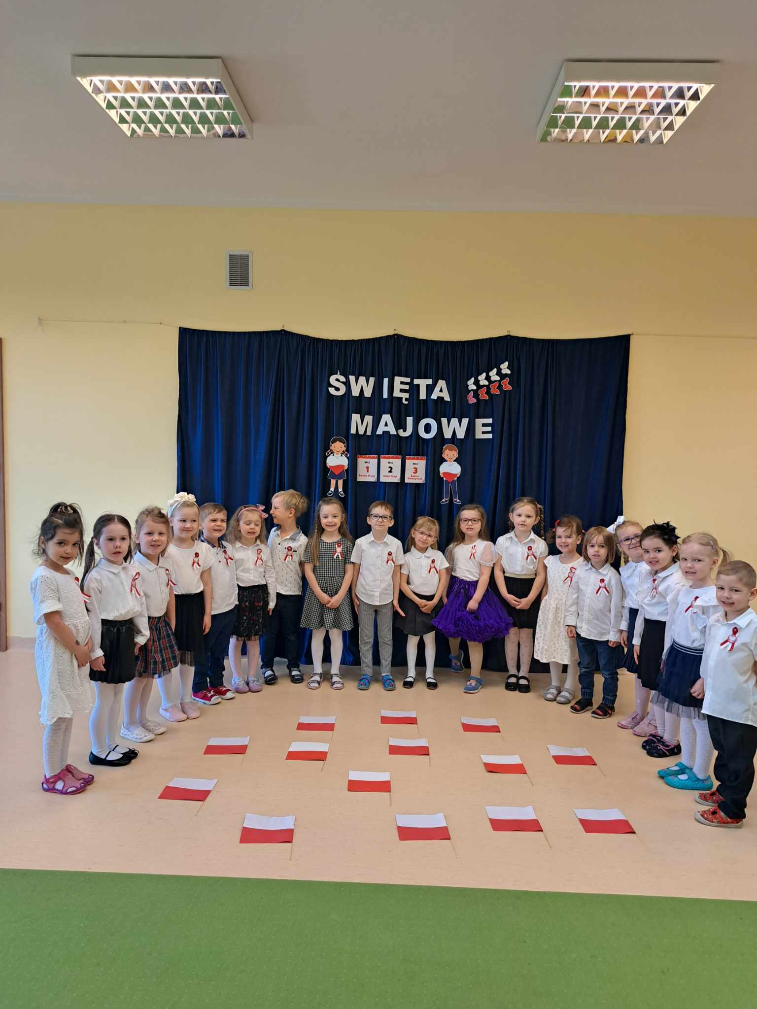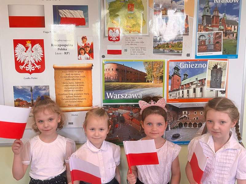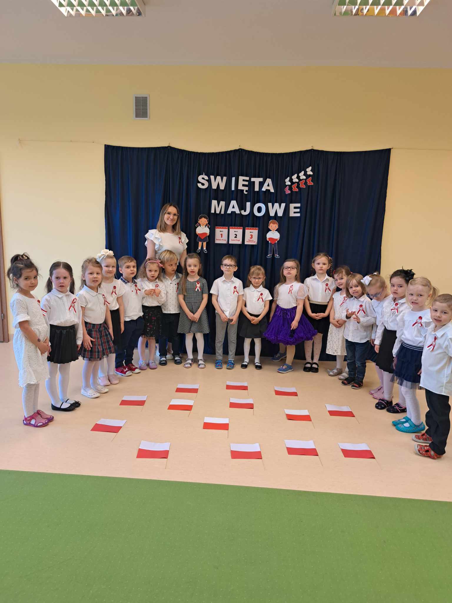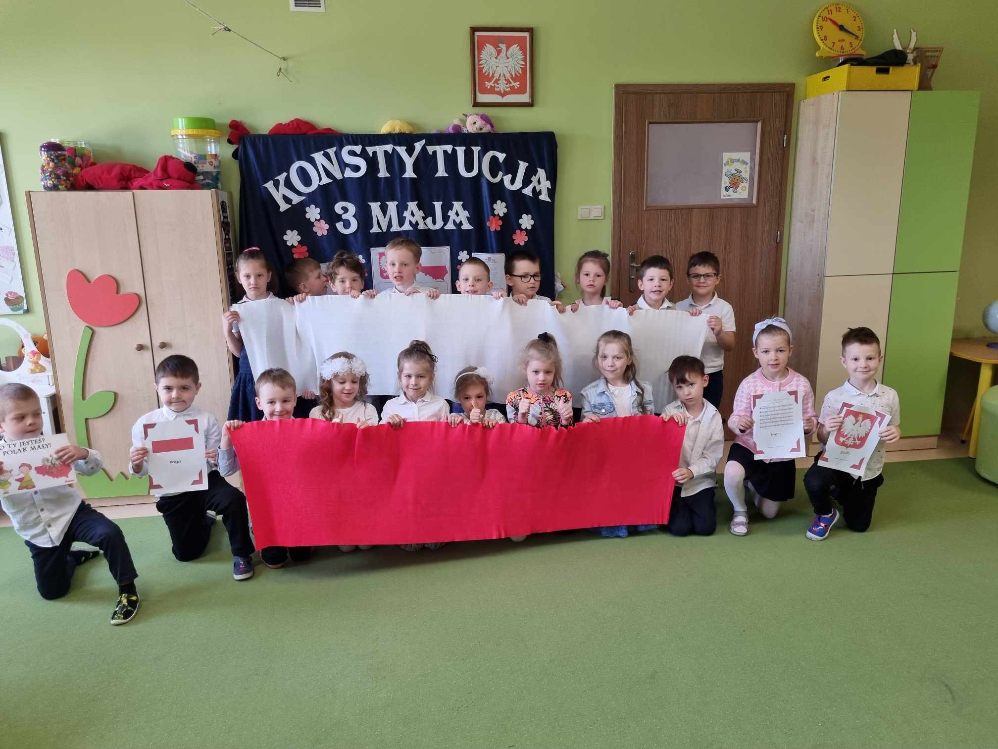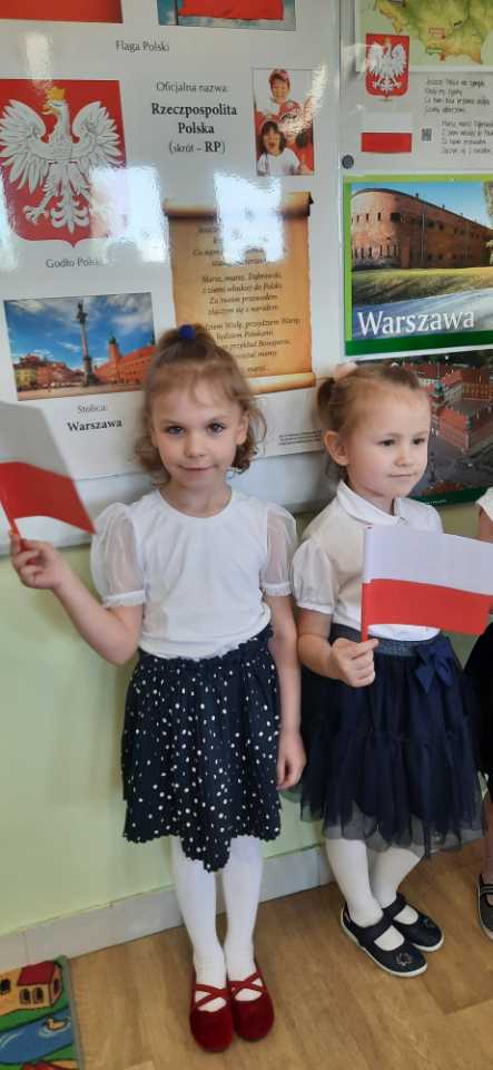 Wszyscy doskonale wiemy, jak ważne jest poczucie przynależności do grupy społecznej, najbliższej rodziny, kraju w którym żyjemy. Maj to miesiąc, w którym obchodzimy kilka ważnych wydarzeń. Pierwszym z nich jest Święto Flagi obchodzone 2 maja oraz Święto Narodowe Trzeciego Maja obchodzone w rocznicę uchwalenia Konstytucji. Miesiąc ten dostarcza nam możliwości do kształtowania postaw szacunku do historii naszego kraju, symboli narodowych, rozbudzania tożsamości narodowej. We wtorek 30 kwietnia dzieci z wszystkich grup wiekowych uczciły te wyjątkowe dla każdego Polaka Święta. W postawie na baczność cała społeczność zaśpiewała Mazurka Dąbrowskiego – Hymn Polski. Biało – czerwone prace plastyczne ozdobiły wszystkie przedszkolne sale. Symbole narodowe – jak Flaga biało-czerwona, godło Polski z białym orłem w koronie na czerwonej tarczy, to symbole podkreślające charakter, niezależność i dumę wszystkich Polaków. Każdy przedszkolak wie, że to one jednoczyły Polaków w trudnych historycznych chwilach w kraju i poza granicami.