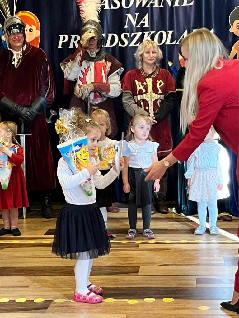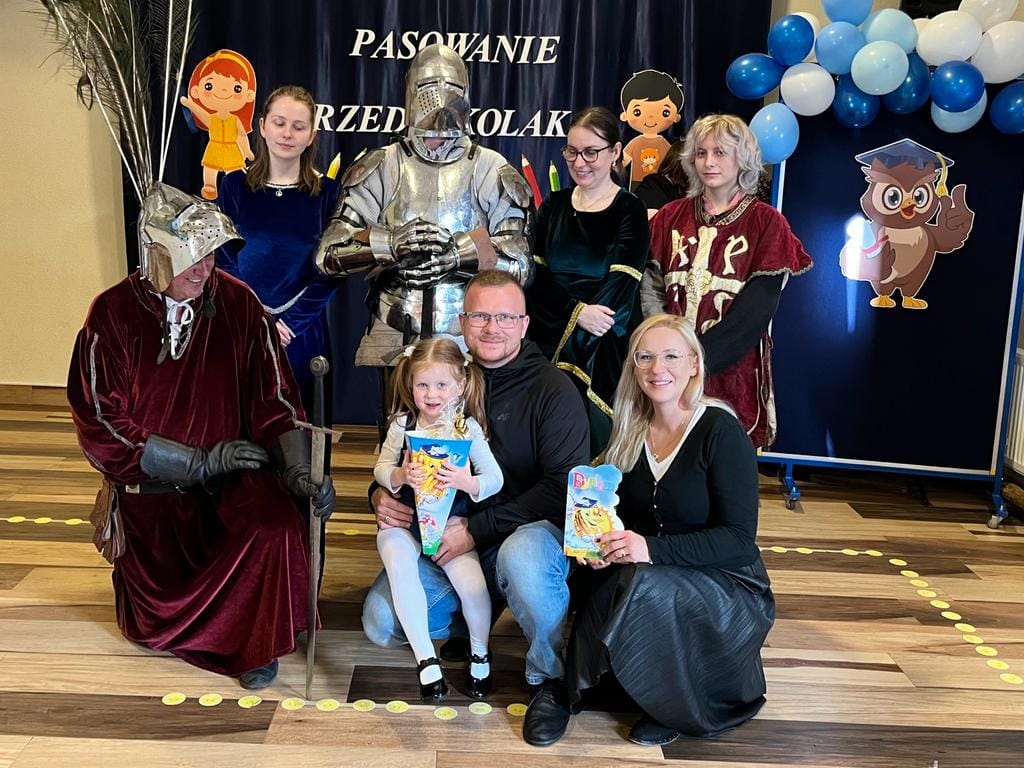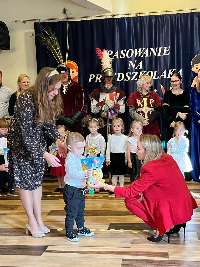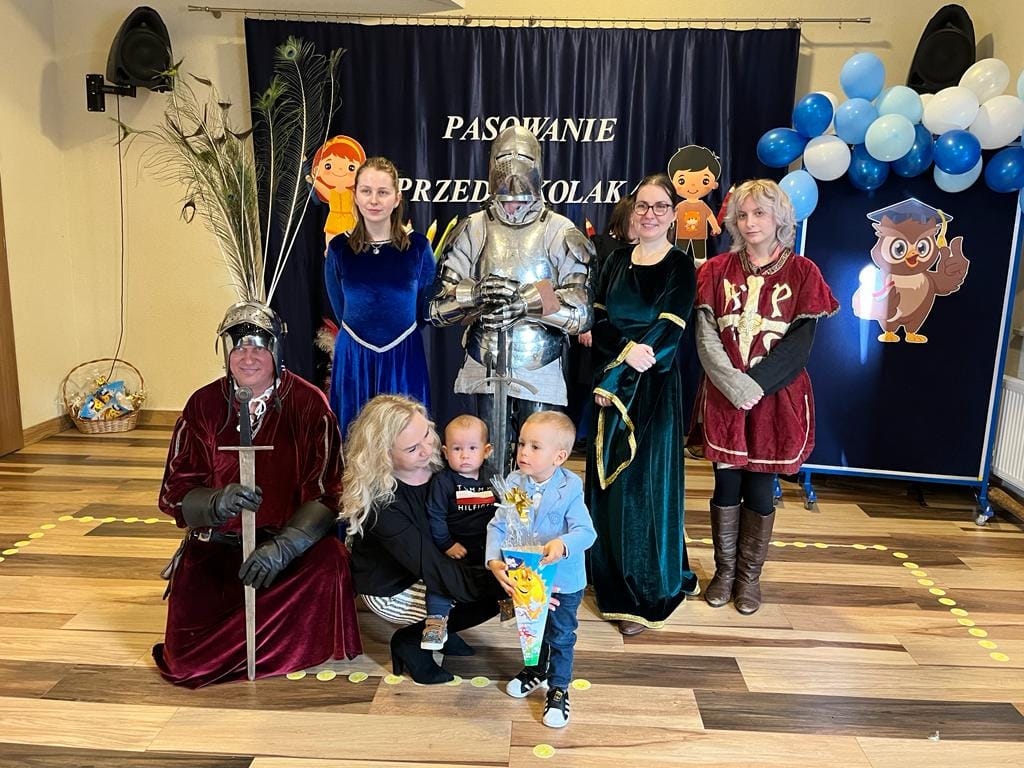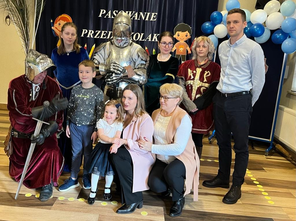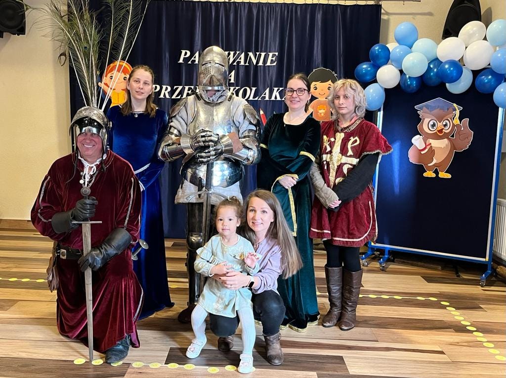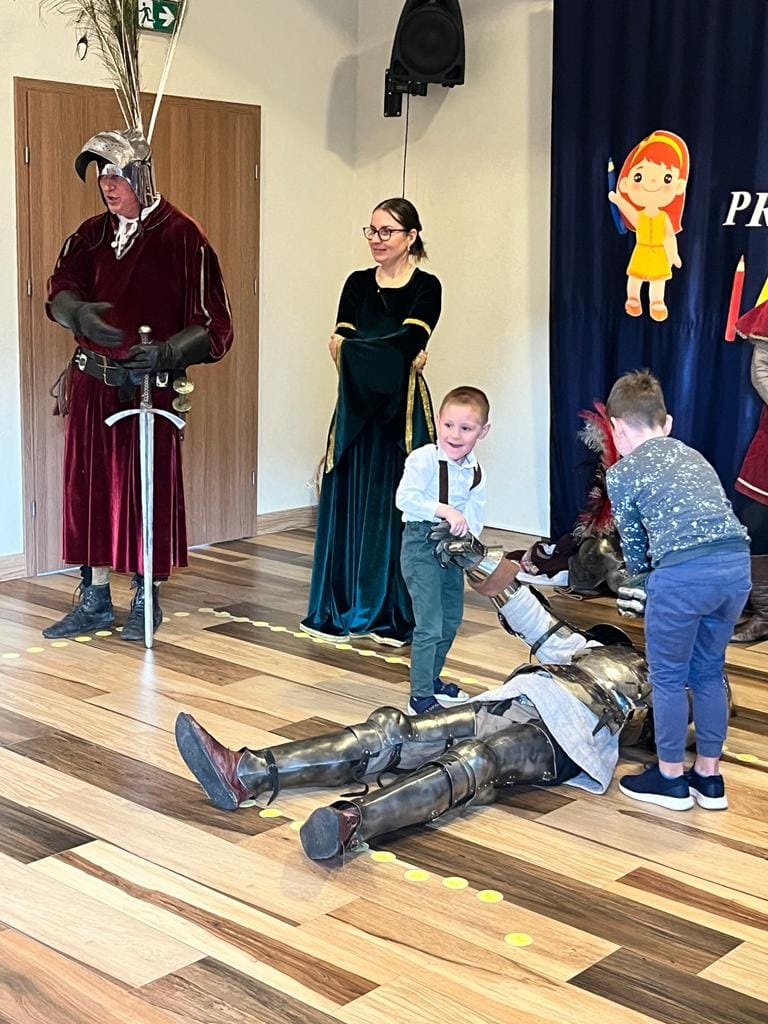 Podczas występów artystycznych przedszkolaki odważnie zaprezentowały poznane wierszyki i piosenki. Rodzice z dumą obserwowali swoje pociechy z widowni. Po dokonaniu pasowania przez panią dyrektor i wręczenia dyplomów oraz słodkich upominków, swoje umiejętności zaprezentowali również dwórki i rycerze z panem Jacentym na czele. Na przedszkolnej scenie odbyły się pokazy tańców, prezentacja zbroi oraz pasowanie na rycerza. Na zakończenie na wszystkich zebranych czekał słodki poczęstunek przygotowany przy udziale rodziców naszych przedszkolaków.