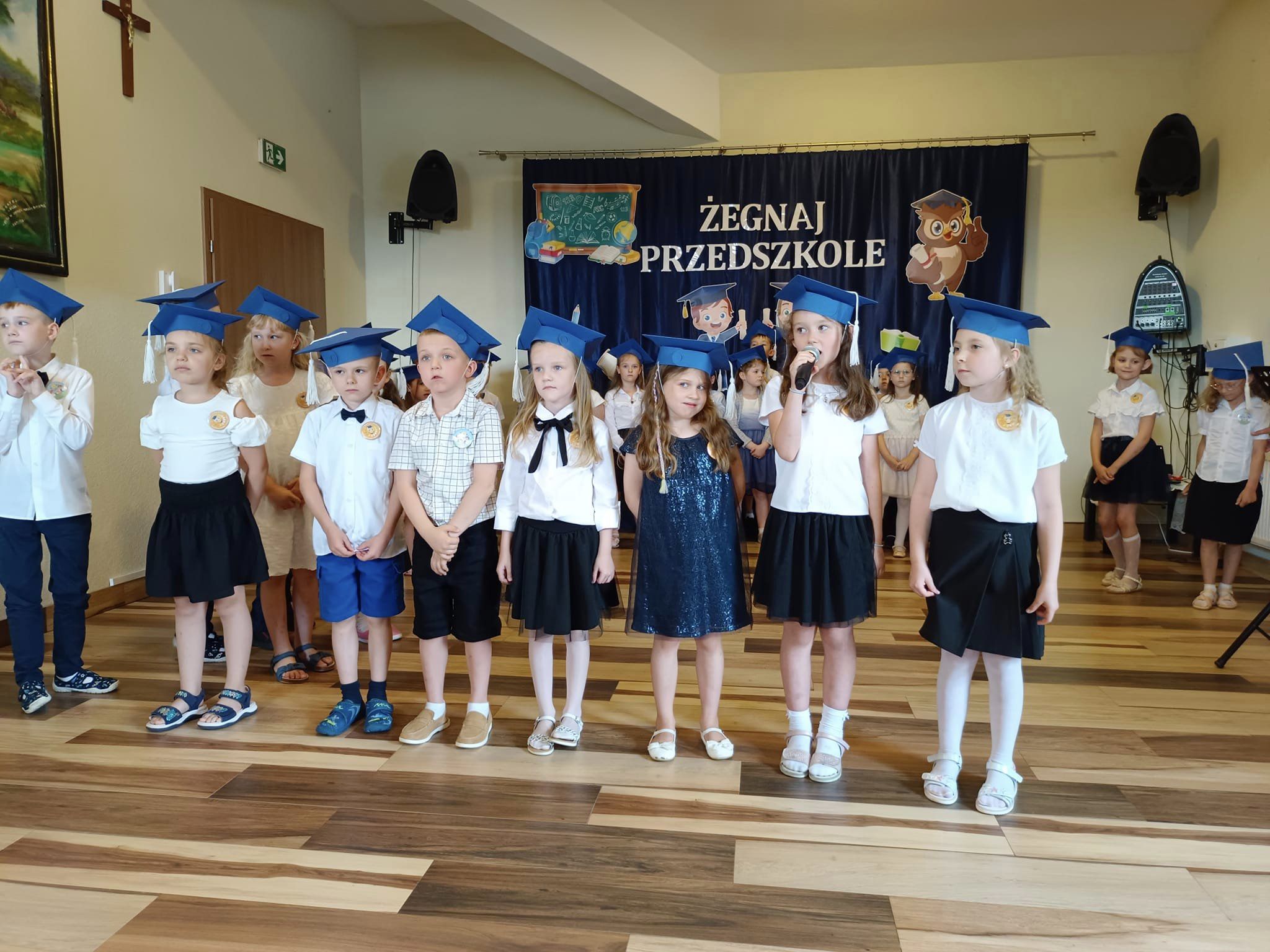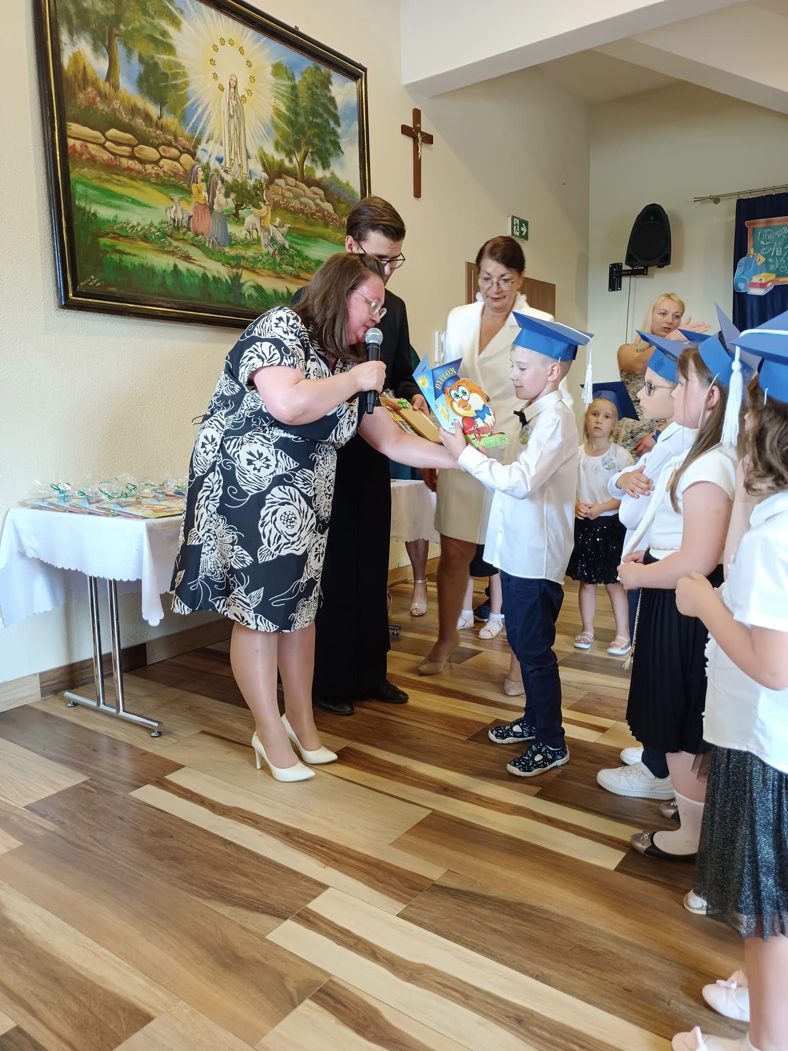 Uroczyste zakończenie roku przedszkolnego w grupach „0” odbyło się 21 czerwca 2023 r. Tego dnia „Motylki” i „Słoneczka” pożegnały się ze swoimi paniami, całym personelem przedszkola, a także młodszymi kolegami i koleżankami. O godzinie 11.00 dzieci, rodzice, wychowawczynie oraz zaproszeni goście wzięli udział w mszy świętej, którą odprawił dyrektor Katolickiego Przedszkola „U Lolka” – ks. dr Tadeusz Białous. Eucharystia sprawowana była w intencji tegorocznych absolwentów i ich rodzin. Po uroczystej mszy świętej, już w budynku przedszkola, odbyła się część artystyczna. Dzieci pięknie zatańczyły poloneza, którego kroki pilnie ćwiczyły od kilku tygodni. Potem recytowały wiersze i śpiewały piosenki, dziękując w ten sposób opiekunom za czas spędzony w przedszkolu, dobre serce, troskę, przekazaną wiedzę oraz umiejętności. Na koniec wszystkie dzieci otrzymały pamiątkowe dyplomy, książki i słodkie niespodzianki. Były także życzenia i wzruszające podziękowania ze strony dyrekcji, nauczycieli oraz rodziców. Piękne słowa do uczestników tego wydarzenia skierował również al. Jakub Milewski.