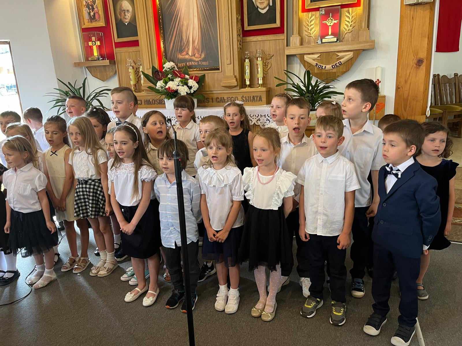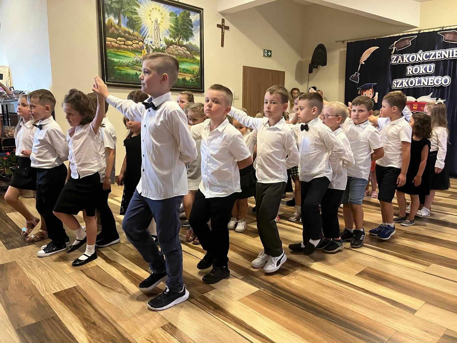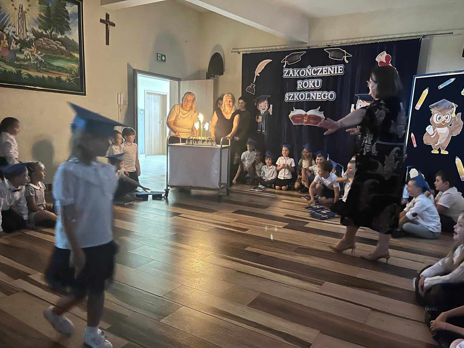 W dniu 19 czerwca 2024 r. w Katolickim Przedszkolu „U Lolka” odbyła się wyjątkowa uroczystość – zakończenie roku szkolnego 2023/2024 w zerówkach. Uroczystość rozpoczęła się Mszą Świętą. Po Eucharystii dzieci wraz z rodzicami powróciły do budynku przedszkola. Tam wszystkich zgromadzonych powitał dyrektor przedszkola – ks. dr Tadeusz Białous. Następnie przyszedł czas na program artystyczny, który rozpoczął się tradycyjnie od poloneza. Taniec bez wątpienia zachwycił rodziców i gości i posypały się gromkie brawa. Kolejne minuty występu przyniosły mnóstwo wzruszeń, a z oczu wielu gości popłynęły łzy. Były podziękowania, wiersze i piękne piosenki. Przedszkolaki starały się wyrazić swoją wdzięczność dyrekcji, wychowawcom, nauczycielom i rodzicom za trud wychowania i nauczania, za codzienną troskę, wyrozumiałość i cierpliwość. Po występie wszyscy absolwenci otrzymali dyplomy i upominki na pamiątkę ukończenia przedszkola. Zwieńczeniem całego wydarzenia był wspaniały tort.