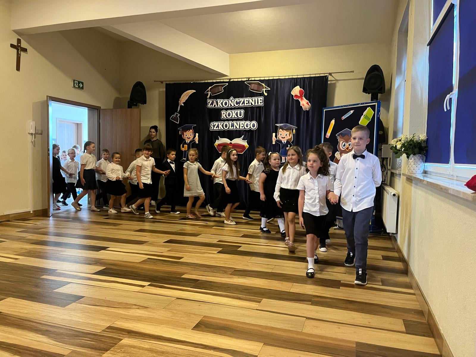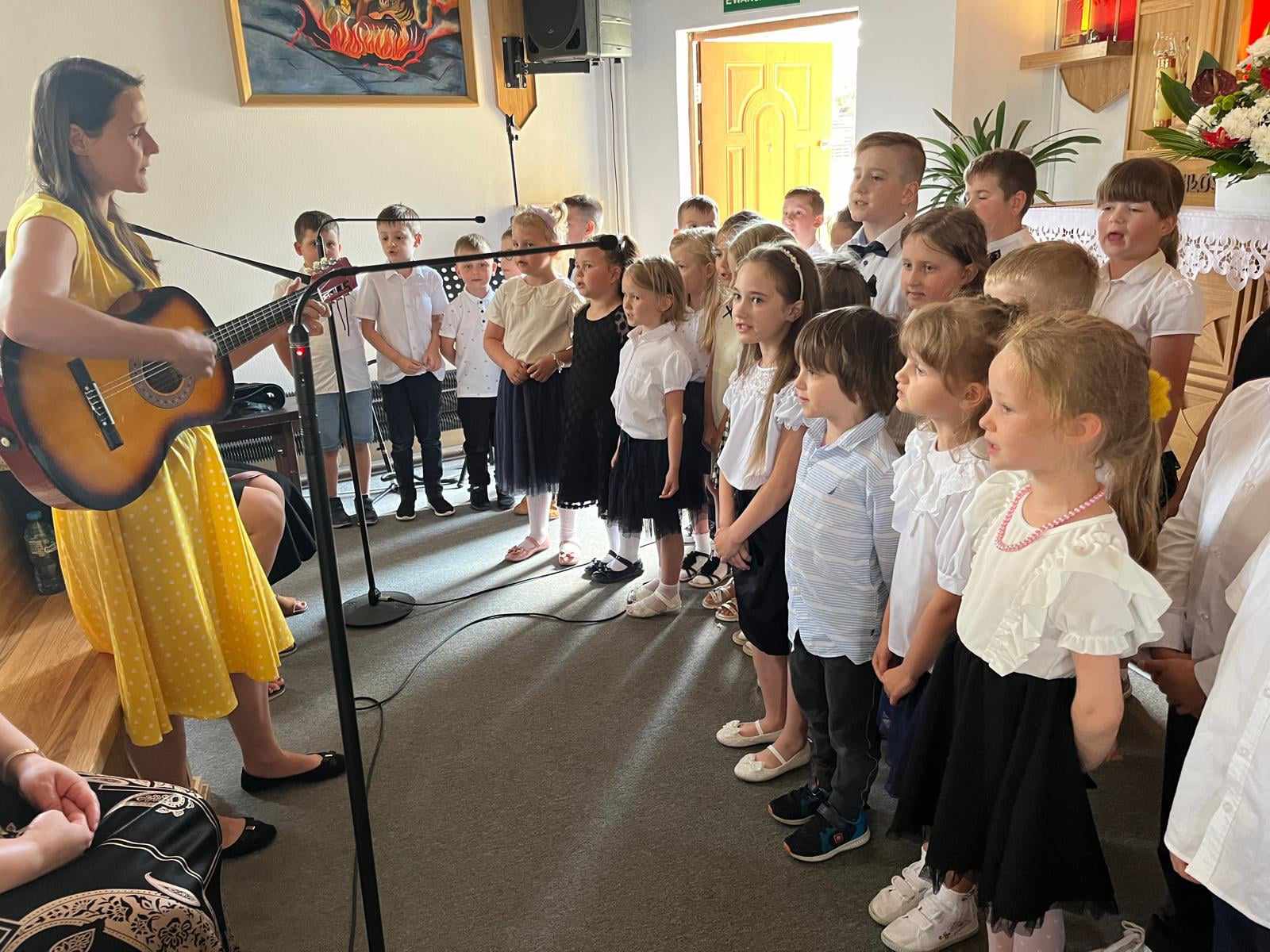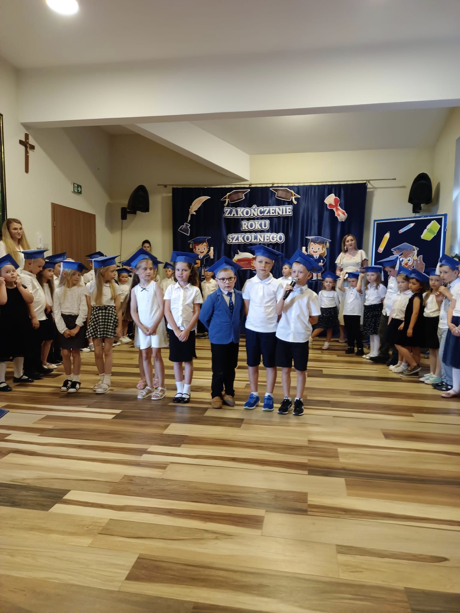 W dniu 19 czerwca 2024 r. w Katolickim Przedszkolu „U Lolka” odbyła się wyjątkowa uroczystość – zakończenie roku szkolnego 2023/2024 w zerówkach. Uroczystość rozpoczęła się Mszą Świętą. Po Eucharystii dzieci wraz z rodzicami powróciły do budynku przedszkola. Tam wszystkich zgromadzonych powitał dyrektor przedszkola – ks. dr Tadeusz Białous. Następnie przyszedł czas na program artystyczny, który rozpoczął się tradycyjnie od poloneza. Taniec bez wątpienia zachwycił rodziców i gości i posypały się gromkie brawa. Kolejne minuty występu przyniosły mnóstwo wzruszeń, a z oczu wielu gości popłynęły łzy. Były podziękowania, wiersze i piękne piosenki. Przedszkolaki starały się wyrazić swoją wdzięczność dyrekcji, wychowawcom, nauczycielom i rodzicom za trud wychowania i nauczania, za codzienną troskę, wyrozumiałość i cierpliwość. Po występie wszyscy absolwenci otrzymali dyplomy i upominki na pamiątkę ukończenia przedszkola. Zwieńczeniem całego wydarzenia był wspaniały tort.
