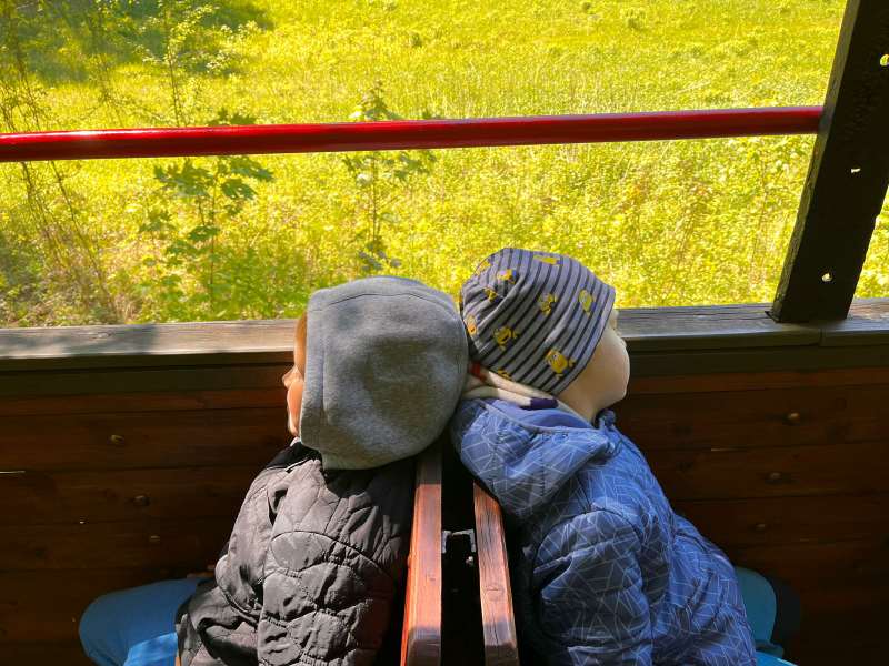 Przejazd Ełcką Kolejką Wąskotorową to świetna atrakcja dla dzieci, a także cenna lekcja historii i niepowtarzalna okazja do podziwiania piękna przyrody.Jadąc wąskotorówką, zobaczyliśmy wspaniałe krajobrazy, których nie bylibyśmy w stanie dostrzec np. z samochodu.
