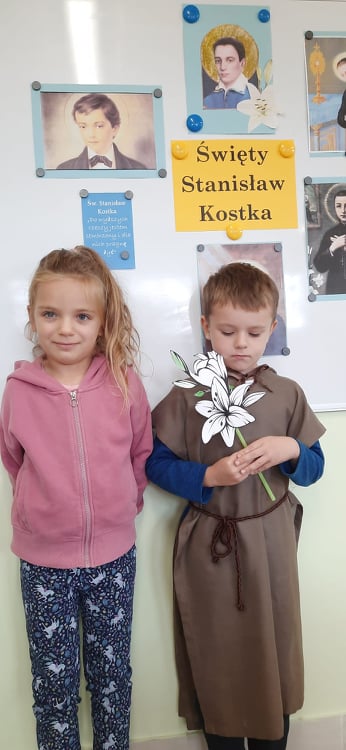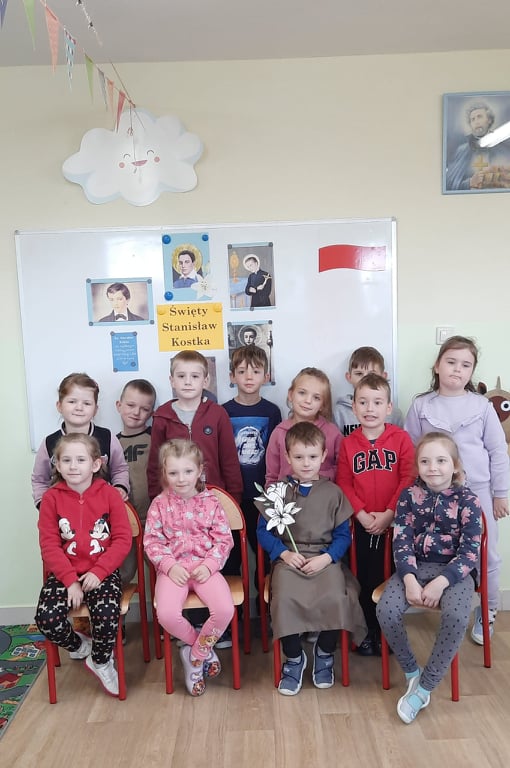 W niedzielę 18 września przypada liturgiczne wspomnienie św. Stanisława Kostki; patrona Polski, ministrantów oraz dzieci i młodzieży. Przedszkolaki z Katolickiego Przedszkola „U Lolka” obchodziły Dzień Św. Stanisława Kostki 19 września, czyli w poniedziałek. Tego dnia w każdej grupie pojawił się wyjątkowy gość, a mianowicie jeden z naszych dzielnych sześciolatków – Bartek z grupy Motylków. Odpowiednio ucharakteryzowany chłopiec przybliżył młodszym kolegom postać tego wyjątkowego świętego. Każdy z przedszkolaków mógł poznać główne fakty z życia św. Stanisława Kostki oraz jego „drogę do świętości”, a tym samym poznać wzór do naśladowania, jaki swoim krótkim życiem napisał ten święty. Na koniec dzieci wykonały piękne prace plastyczne oraz zaśpiewały pieśń ku czci św. Stanisława Kostki.