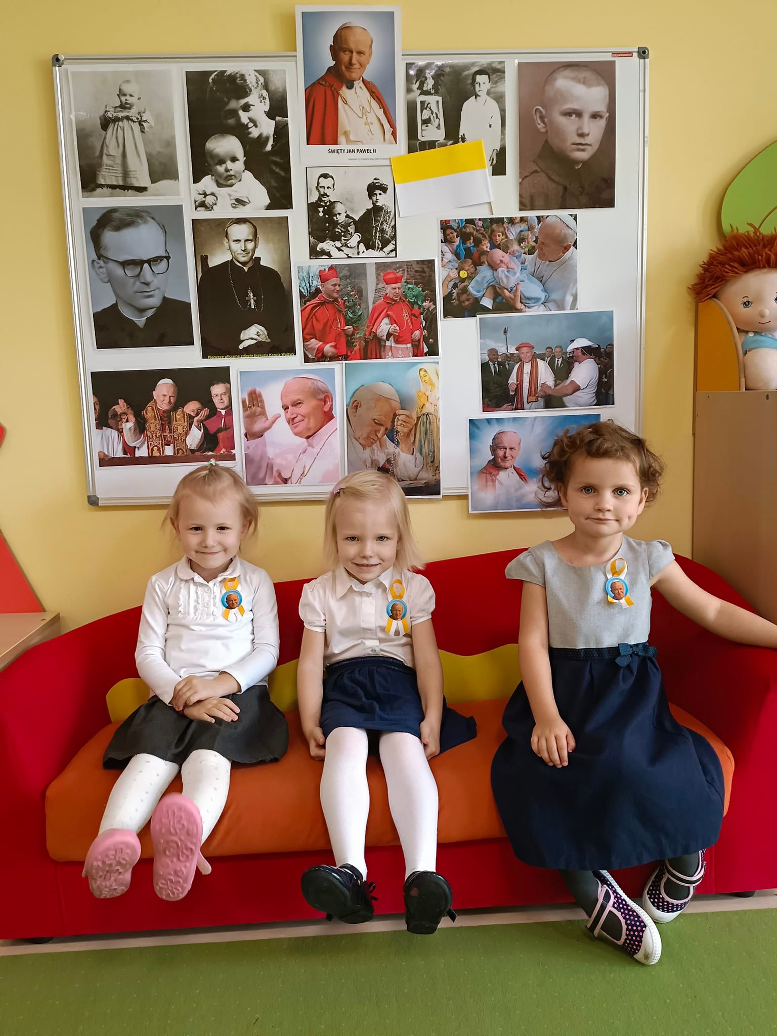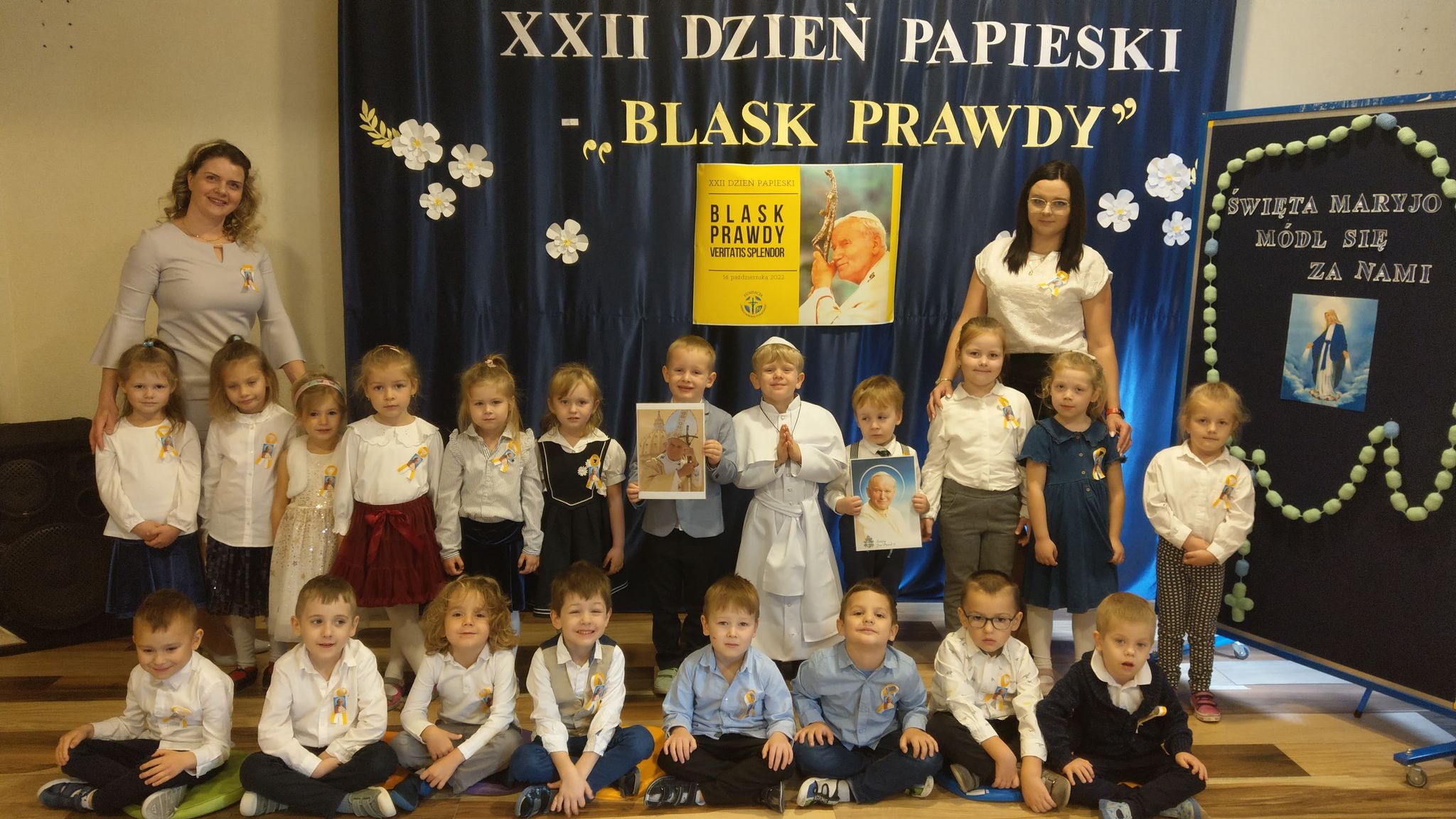 Chcąc uczcić ten Dzień, dzieci przypomniały sobie życiorys Karola Wojtyły; słuchały piosenek bliskich Świętemu; oglądały zdjęcia przedstawiające Wielkiego Papieża w najważniejszych momentach jego pontyfikatu oraz wykonały piękne prace plastyczne upamiętniające naszego patrona. Całości dopełnił wzruszający program artystyczny przygotowany przez dzieci 5-letnie z grupy „Koniczynek”.