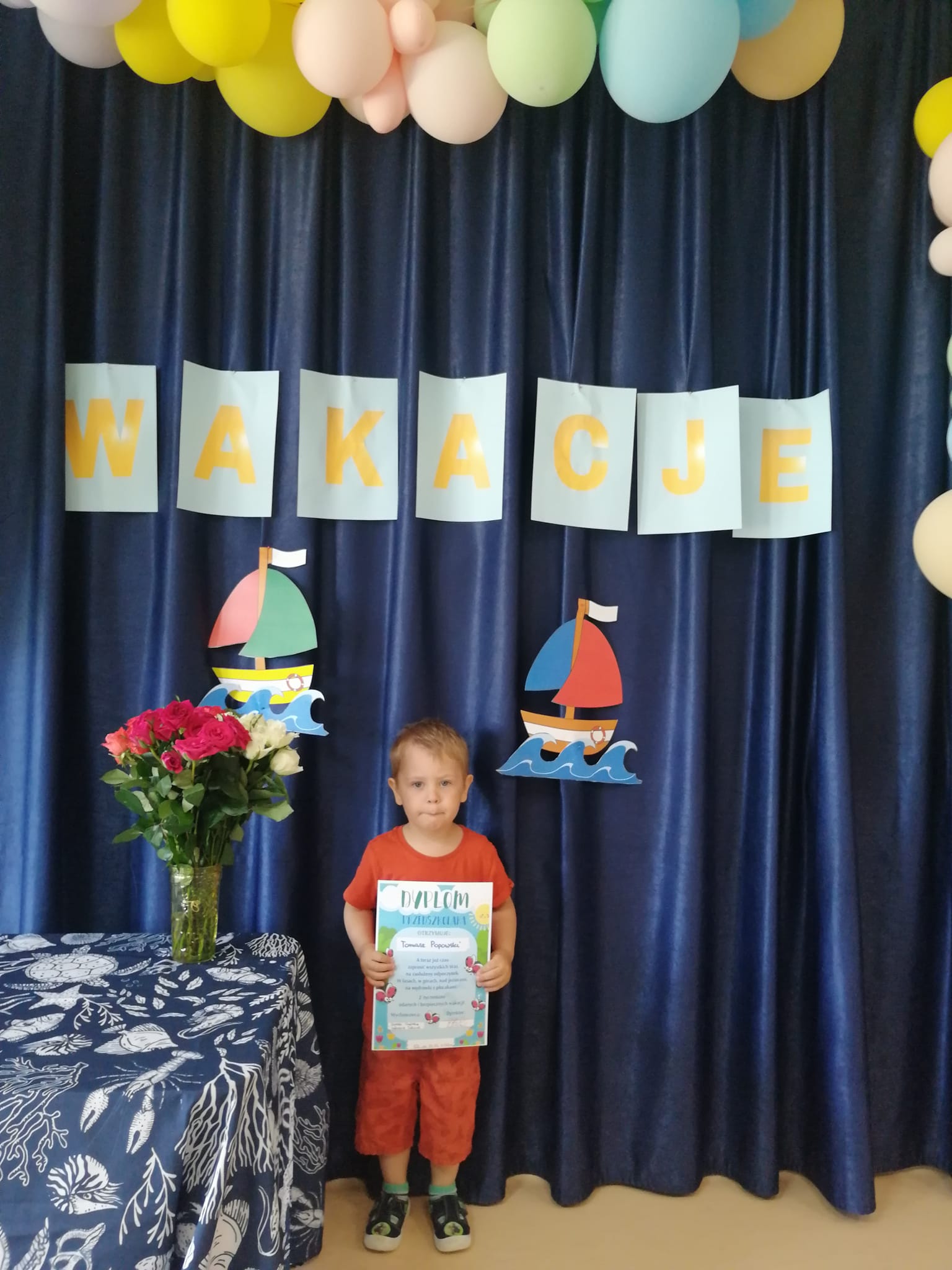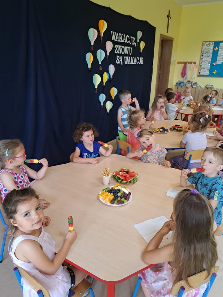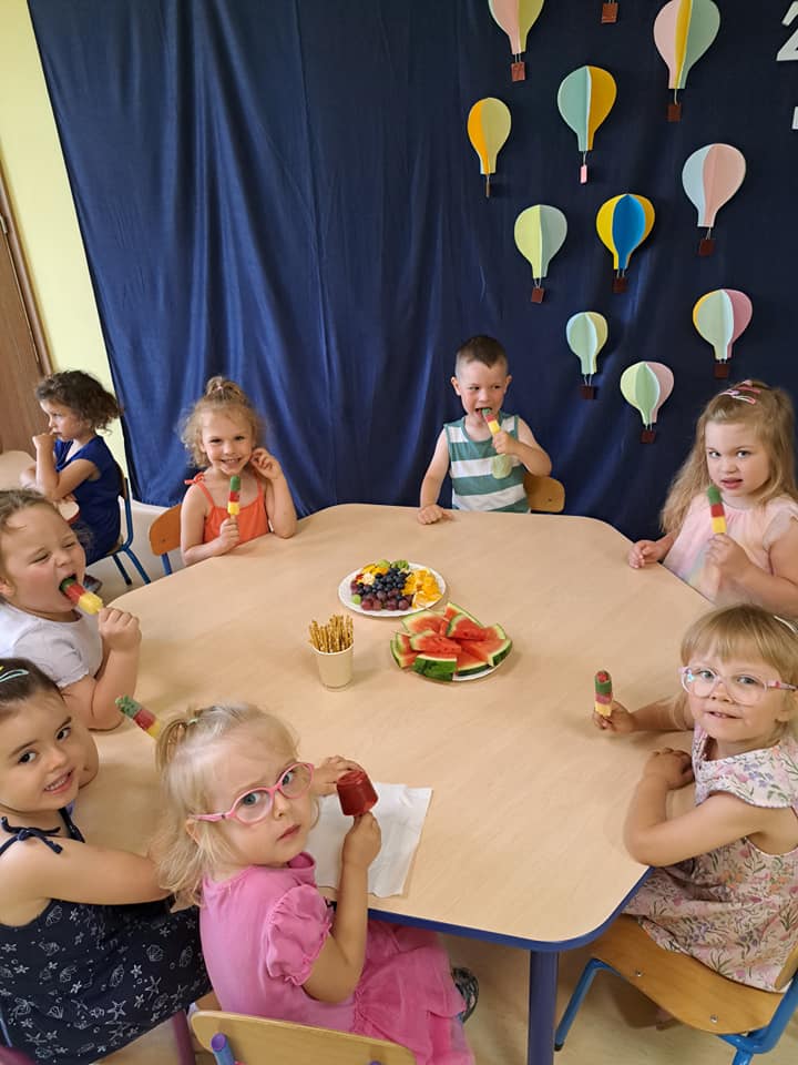 W piątek 23 czerwca 2023 r. w naszym Przedszkolu odbyły się grupowe uroczystości Zakończenia Roku Przedszkolnego. Każda z grup dla uwiecznienia tej chwili, wykonała wspólne grupowe zdjęcie. W podziękowaniu za cały rok uczęszczania do przedszkola, na niektóre dzieci czekały lody oraz ,,zdrowe przekąski”. Dzieci w wakacyjnych strojach powitały uroczyście wakacje. Na zakończenie każdy przedszkolak otrzymał pamiątkowy dyplom.